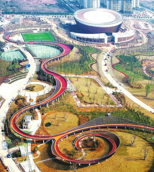 施工中的南充市蓬安县文体中心建设项目。连日来,蓬安县各个重点工程项目工地一派繁忙景象,建设者抢工期、赶进度、保质量,加快推进项目建设。 (周亮 摄 视觉四川)