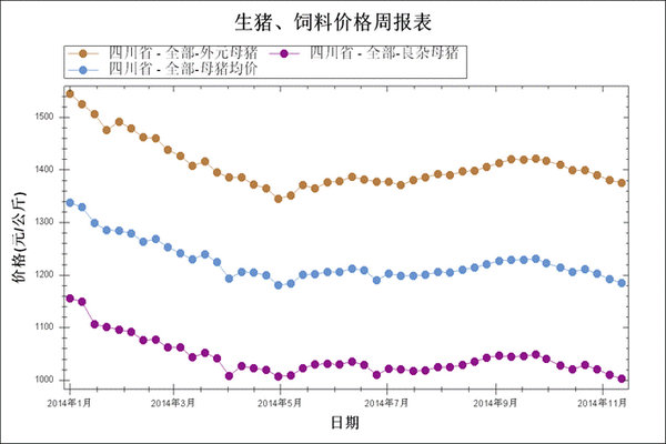 图4 2014年1月~11月第2周后备母猪均价走势图