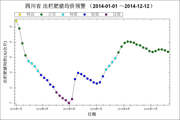 图1 2014年1月~12月第2周出栏肥猪价格走势图