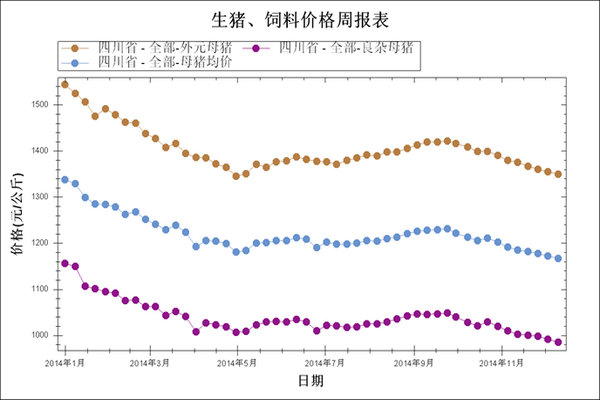 图4 2014年1月~12月第2周后备母猪均价走势图