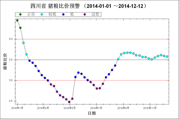 图2 2014年1月~12月第2周猪粮比走势图