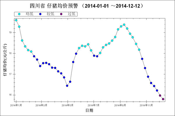 图3 2014年1月~12月第2周仔猪均价走势图