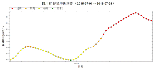 图3 2015年7月~2016年7月第4周仔猪均价走势图