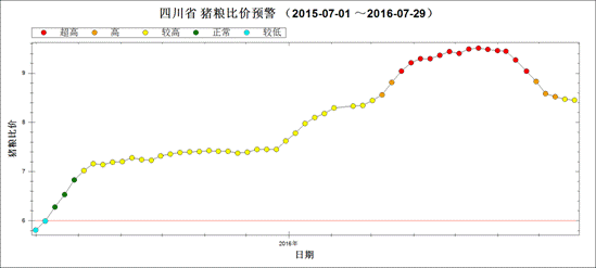图2 2015年7月~2016年7月第4周猪粮比走势图