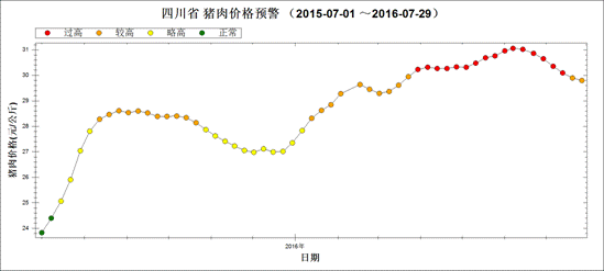 图5 2015年7月~2016年7月第4周猪肉市场零售均价走势图