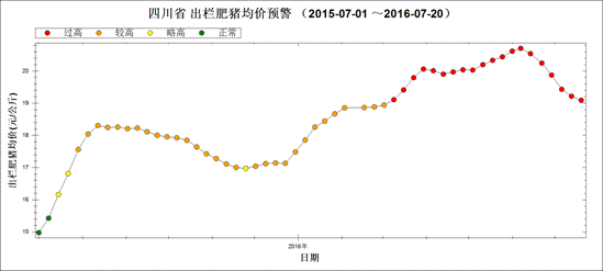 图1 2015年7月~2016年7月第3周出栏肥猪价格走势图