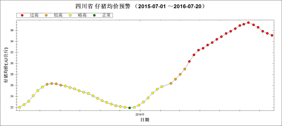 图3 2015年7月~2016年7月第3周仔猪均价走势图