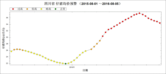 图3 2015年8月~2016年8月第1周仔猪均价走势图