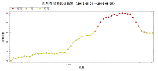 图2 2015年8月~2016年8月第1周猪粮比走势图