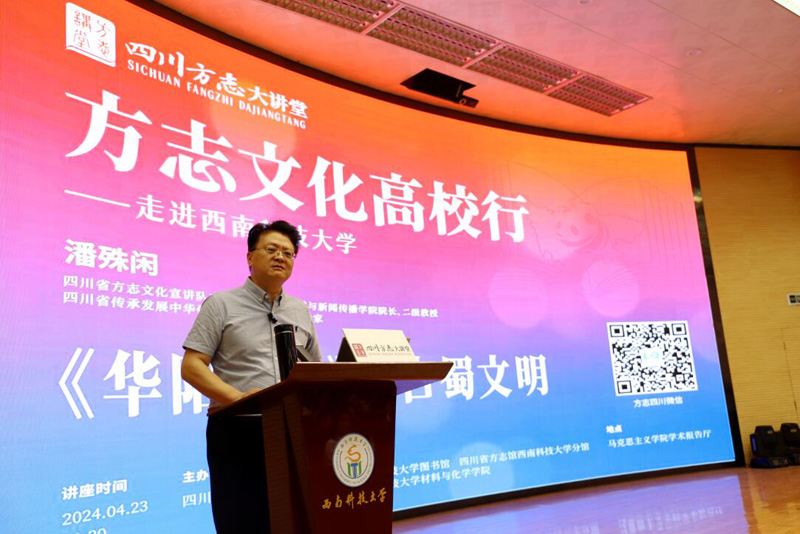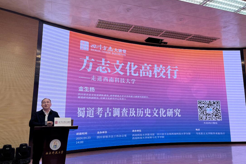 为深入贯彻落实习近平文化思想,助力传承弘扬中华优秀传统文化、巴蜀文化,培育践行社会主义核心价值观,4月23日世界读书日,四川方志大讲堂“方志文化高校行”活动在西南科技大学举行。西南科技大学党委书记杨俊辉,四川省地方志办党组成员、机关党委书记邓瑜出席并致辞。
