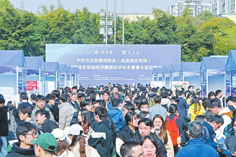 提升招聘服务质效,为毕业生提供充足的就业岗位,是实现高质量充分就业的关键一步。四川省教育系统着力构建“1+2+N”高校毕业生就业校园招聘服务体系,以省级综合性招聘会为引领,以区域性、行业性专场招聘会为关键,以各类“小而精”“专而优”专场招聘会为特色,建设12个“蜀汇菁英”四川省高校毕业生就业常设市场,结合全省各地经济社会发展和产业优势特色,举办绵阳、宜宾、达州等区域性专场招聘会和医卫健康、信息通讯、建工交电等行业性专场招聘会,千方百计为毕业生求职搭建平台,积极服务四川六大优势产业和各地经济社会发展。