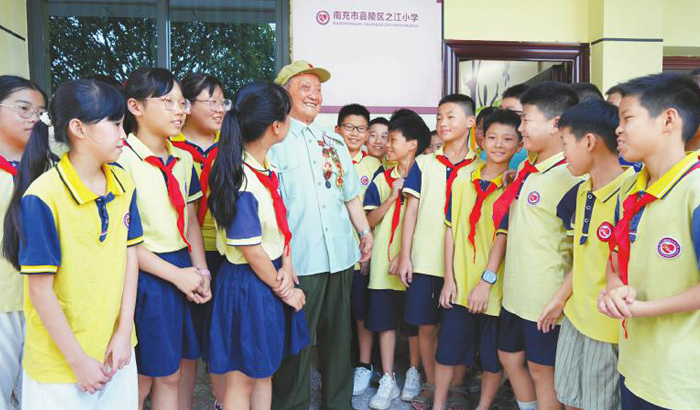南充市红色宣讲员、抗美援朝老英雄邓彰德到嘉陵区之江小学开展红色宣讲活动。