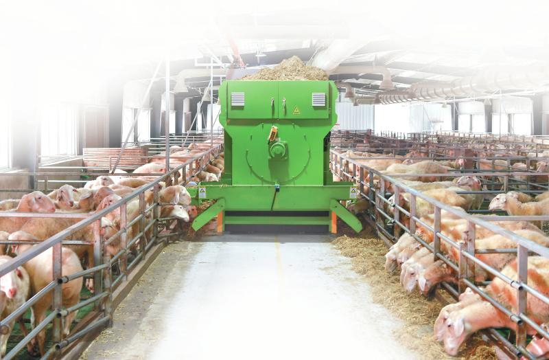 9月28日,在广安区石笋镇万头湖羊养殖基地,智能机器人在圈舍内给湖羊自动投喂食料。张国盛 摄