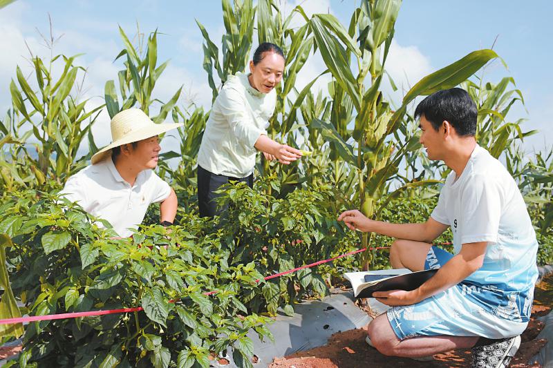 龙马潭区结对帮扶工作队队员在普格县查看辣椒长势。龙马潭区结对帮扶工作队供图(资料图片)