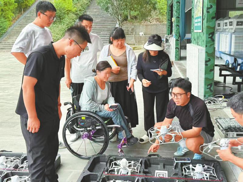 近日,巴中市巴州区立森素质教育学校里,无人机腾空而起,残疾人杨斌(化名)聚精会神地盯着监控画面、操纵无人机。一旁,同训的20多名残疾人学员跃跃欲试。紧抓低空经济发展机遇,今年4月,巴中市残联在巴州区启动首批残疾人无人机操作培训。杨斌得知消息后立刻报了名。