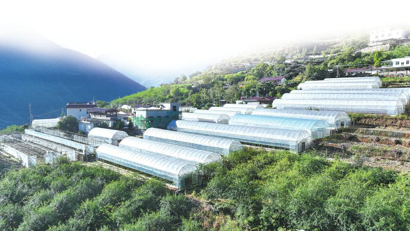 11月8日,木里县乔瓦镇簸箕箩村,攀枝花援建的农业智慧大棚整齐排列。湛璐霜 摄
