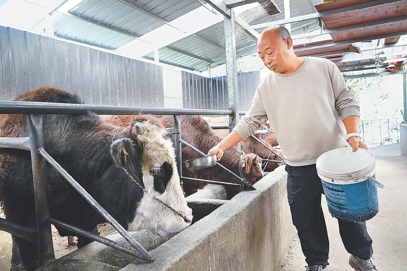 在政策帮扶下,罗友军改造圈舍300平方米,能一次性圈养50头牛左右,现在他每年能卖出上百头牛。圈养的好处也慢慢体现出来——成活率提高,出栏周期缩短,“通过圈养育肥,平均一头牛多卖1000元以上,一只羊多卖200元以上。”罗友军说。