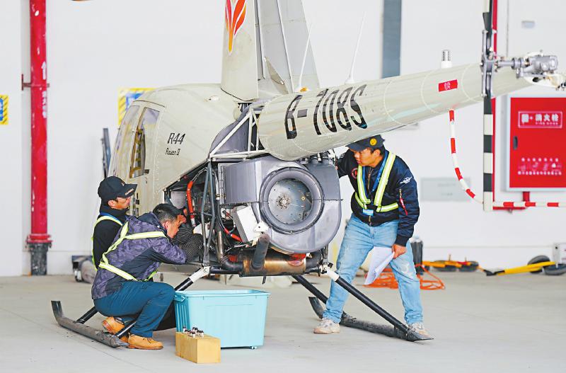 四川泛美通用航空集团有限公司的工作人员在调试设备。郭超英 摄
