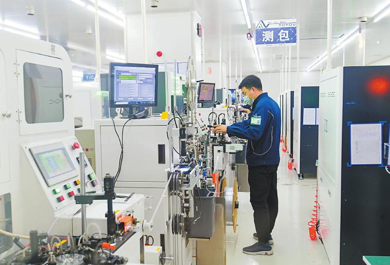 近日,通友微电(四川)有限公司工人正在车间生产电感元件材料。夏雨 摄