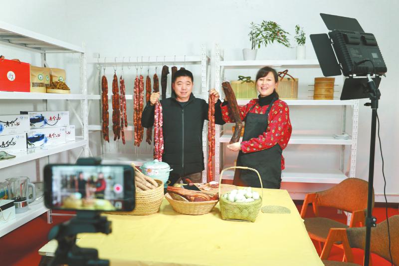 宝兴齐海蒙农业直播销售香肠、山药等土特产。黄刚 摄