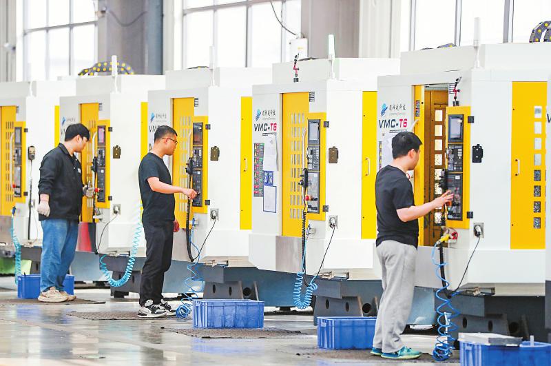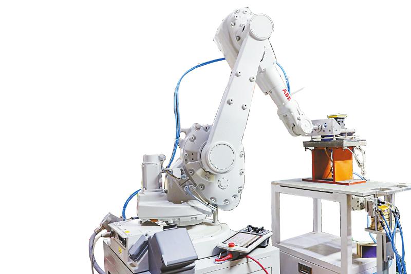 5月7日,四川华蓥山经开区瀚海精密制造有限公司的智能车间,机器人在加工产品。邱海鹰 摄(C视觉)