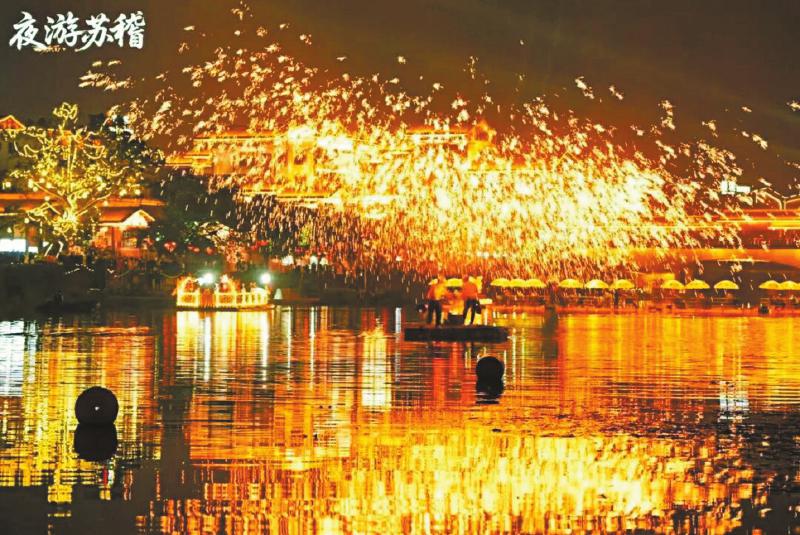 苏稽古镇推出“沉浸式”夜游项目打铁花。受访者供图