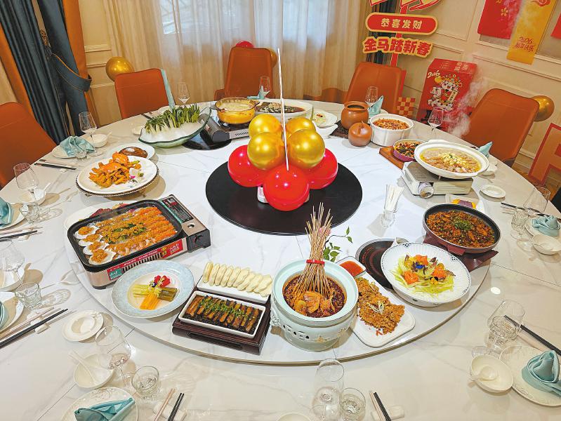 同一天,刚结束出差的市民罗伟订下了乐山市市中区苏稽镇的周村古食跷脚牛肉年夜饭套餐。“做饭费时又费力,不如外订年夜饭,‘轻量化’过节,有更多时间去体验新春活动。”罗伟说。