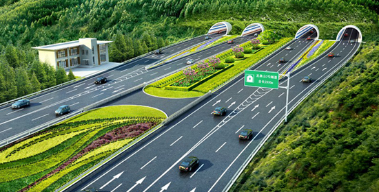 成都天府国际机场高速公路示意图及龙泉山隧道效果图