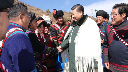 11日上午,习近平总书记驱车2个多小时,从西昌市来到位于大凉山深处的昭觉县三岔河乡三河村、解放乡火普村,走进彝族贫困群众家中,看实情、问冷暖、听心声,同当地干部群众共商精准脱贫之策。(据新华社“新华视点”微博报道 记者:霍小光,摄影:谢环驰)
