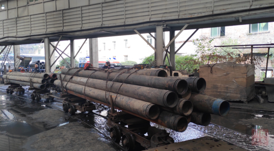 同时,记者看到又有一批排水管紧急运往井下。