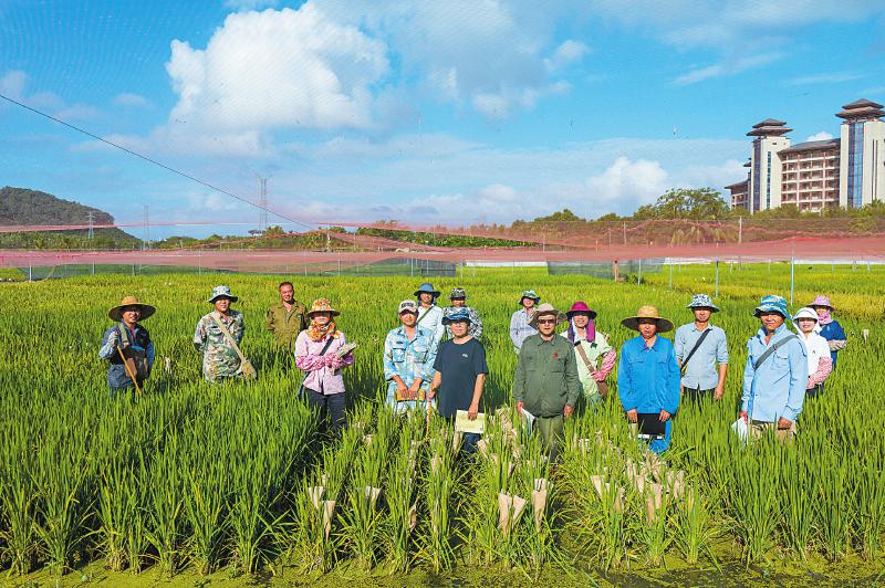 11月16日,部分科研人员在海南基地的稻田中合影。