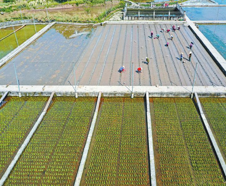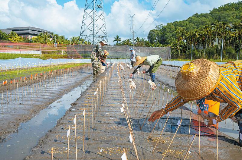 4月21日,科研人员在泸州基地的试验田播下南繁水稻材料。