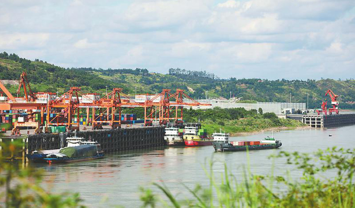 10月7日,四川首个5G智慧港口——宜宾港集装箱码头一派忙碌景象。宜宾港是国家长江干线12个港口铁水联运设施联通项目之一,日前宜宾港铁路集疏运中心专用铁路正式开通,实现铁水联运无缝对接,标志着宜宾港打通铁水联运“最后一公里”。(兰锋 摄 C视觉)