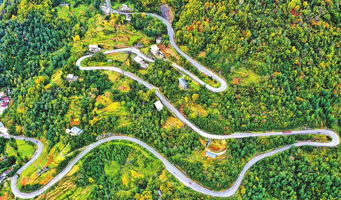 近日,巴中市南江县桥亭镇洋滩村,色彩斑斓的山坡、蜿蜒的农村公路勾勒出一幅美丽的初冬画卷。近年来,南江县推进乡村公路网提档升级,建成“外通内联、通村畅乡、安全便捷”的交通运输网络。肖定怀 摄(C视觉)