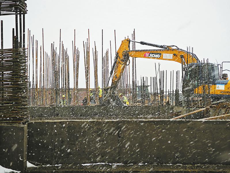 吴庆根和同事顶着风雪,抱起一捆稻草、一卷泡沫走进工地。这处工地是正在建设的电站升压站辅助用房,头一天刚刚完成0米以上的首梁浇筑,现在最要紧的就是混凝土的养护。“温度最关键。”吴庆根介绍,在混凝土凝固过程中,温度过高或过低都有可能造成凝固质量不好,“今天气温特别低,要赶紧采取保暖措施。”