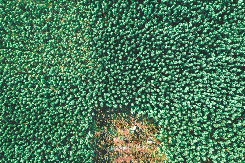 9月10日,凉山州宁南县松新镇碧窝现代农业园区,村民正在采摘桑叶。