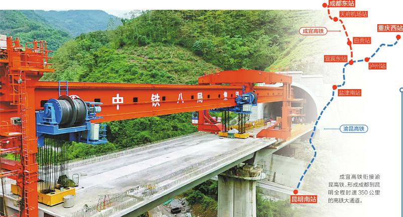 渝昆高铁全线建成通车后,从重庆到昆明将从目前的5小时缩短至最快2小时左右。成宜高铁衔接渝昆高铁,将形成成都到昆明全程时速350公里的高铁大通道,两地通行时间3小时左右。(记者 寇敏芳)