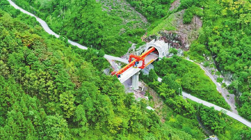 架梁机正在架设箱梁。中国铁路成都局集团有限公司供图