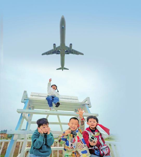 1月12日,秋假首日,成都学生走进空港花田,与呼啸而过的“大家伙”打招呼! 龚榜玉 摄(C视觉)
