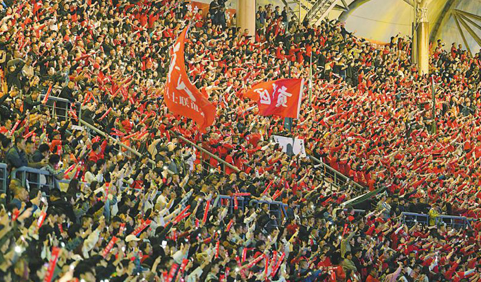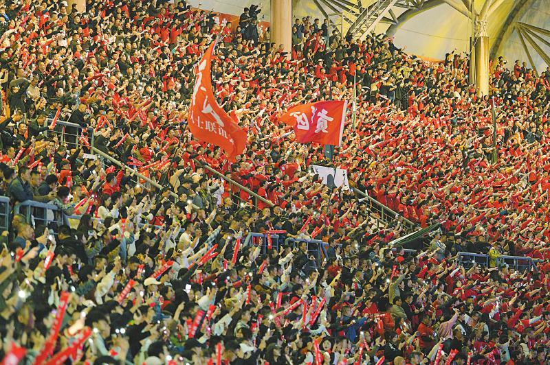 11月9日晚,自贡灯城燊龙队以2∶0战胜泸州窖香队。现场球迷为球队倾情助威。