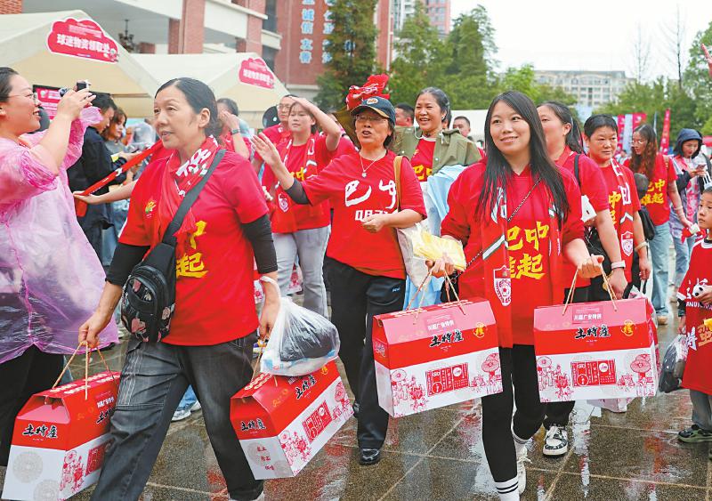 小小票根串起完整消费链。乐山推出6.6元球票换峨眉山半价门票活动,自贡凭票根可免费参观博物馆,阿坝州豪送40万张景区门票。德阳主场的“非遗文创集市”上,剑南春酒、绵竹年画、清平山腊肉等特色产品引得球迷争相选购。球迷余东东抱着特产欣喜地说:“来看球赛还能淘到这么多绵竹好物,真是收获满满!”