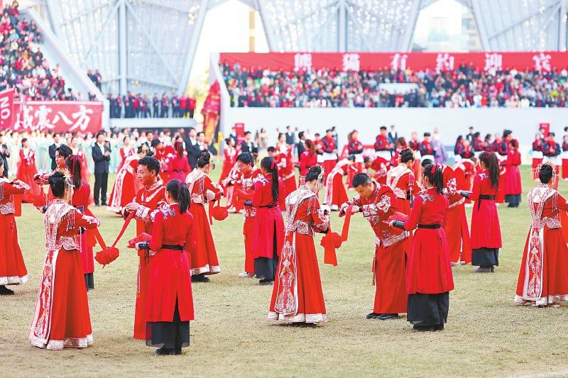 11月23日,“川超”绵阳赛区收官战打响前,百位绵阳新人齐聚赛场,举行了一场别开生面的集体婚礼。