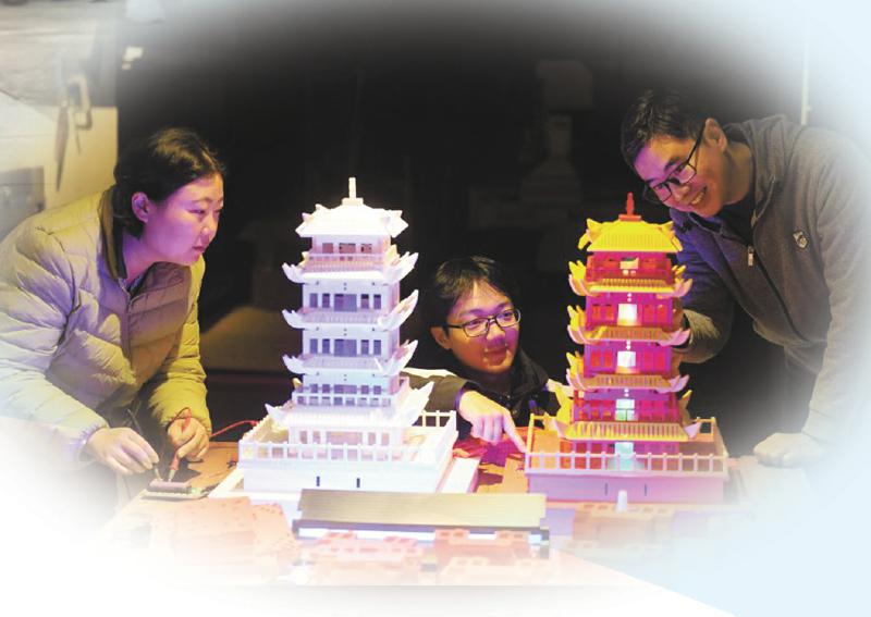 十二月二日,在成都市双流区电子科大科技园(天府园)成电创客基地,科创团队成员对研发的“智能黄鹤楼”进行灯光控制调试。记者 李向雨 摄