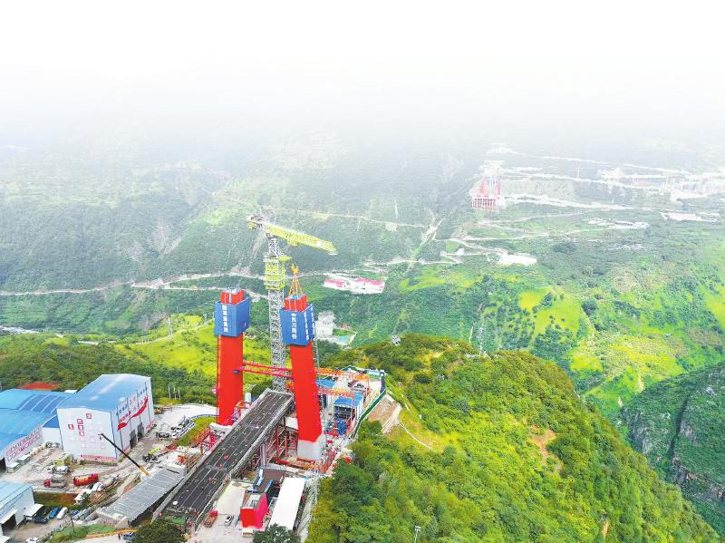 近日,西昌—香格里拉高速公路(西香高速)泸沽湖特大桥施工现场,“Z”字形的施工便道一路从峡谷延伸到山顶。高山峡谷间,这座世界最大跨径空间缆悬索桥两侧索塔正快速“拔高”。