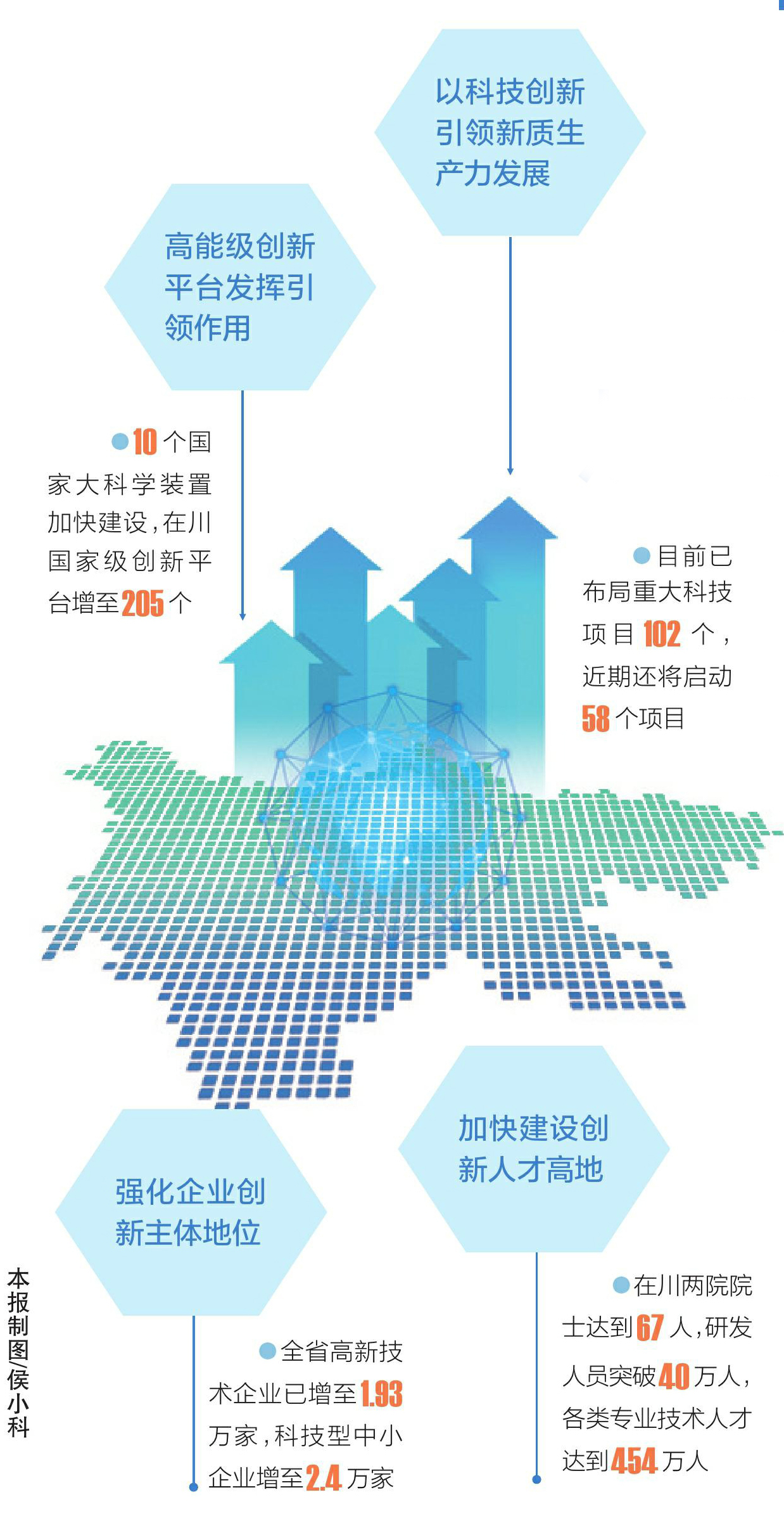 发布会上透露,自省委十二届五次全会部署人工智能、航空航天、先进装备、生物制造、清洁能源、先进材料等重大科技专项以来,截至目前,四川已布局重大科技项目102个,近期还将启动58个项目。