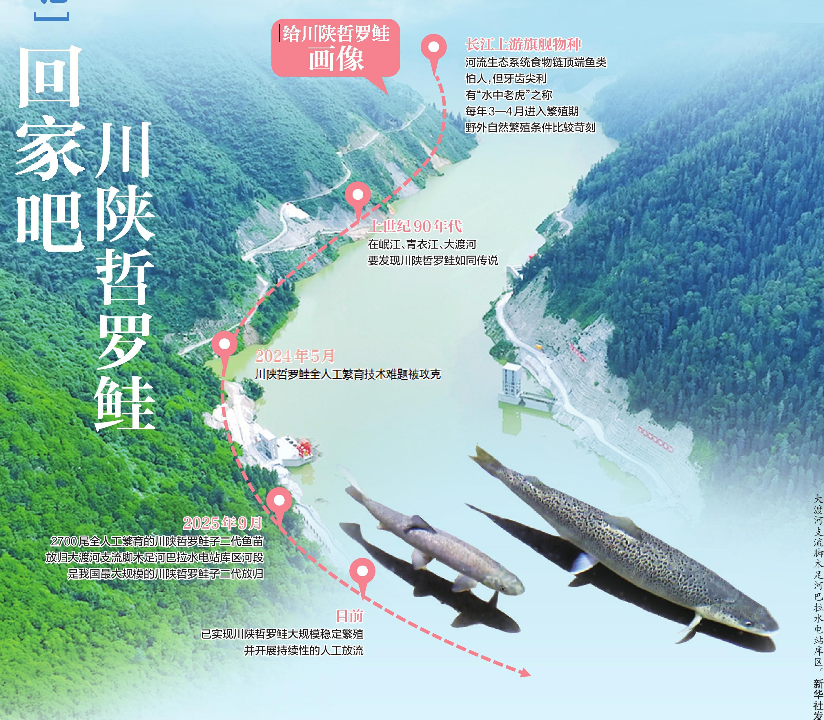 2025年9月10日,2700尾全人工繁育的川陕哲罗鲑子二代鱼苗,在阿坝州马尔康市的大渡河支流脚木足河巴拉水电站库区河段放归,这是我国最大规模的川陕哲罗鲑子二代放归。