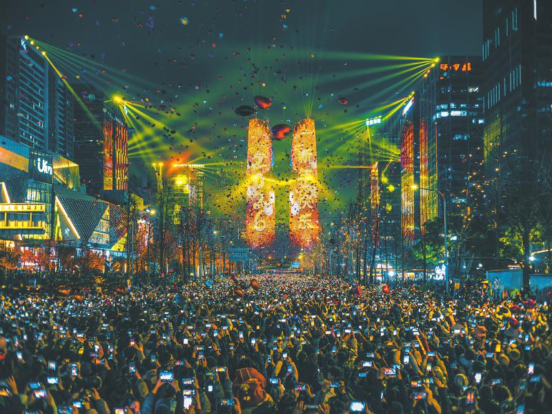 2025年12月31日晚,12万余人欢聚在成都交子大道,共同迎接2026年的到来。