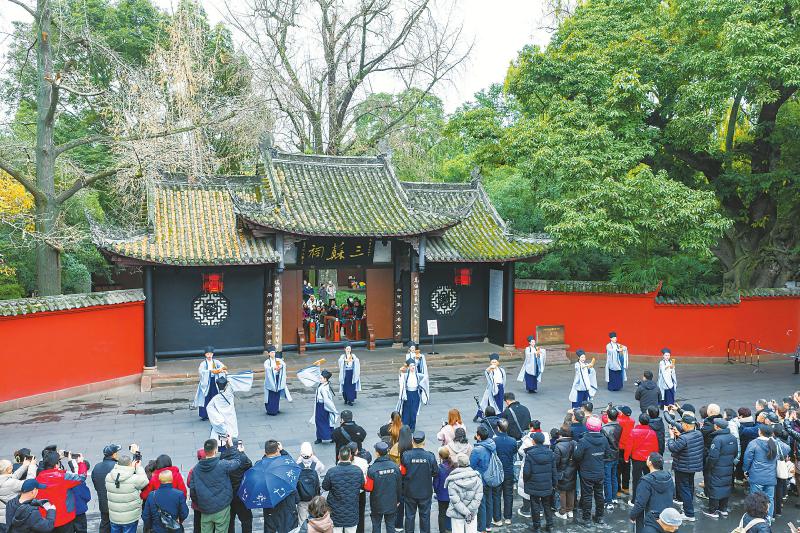 文化赋能旅游趋势明显。眉山三苏祠“诗意迎新 苏祠雅趣”活动通过文化快闪活化历史,吸引众多游客驻足。