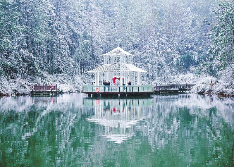 冰雪旅游成为一大亮点。巴中市巴州区天马山国家森林公园在元旦期间迎来今冬初雪,银装素裹的景致吸引众多游客前往赏雪游玩。