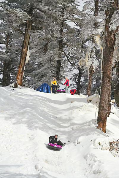 为抢占最佳游玩体验,不少游客选择凌晨出发、错峰打卡。来自乐山市犍为县的黄梓萱小朋友一家前一天下午便启程,夜宿洪雅,10日清晨5点过就出发前往景区。“赶在7点景区开门前就到了,知道白天人会很多,所以赶早。”黄父介绍,爬山、乘索道……一路游玩,他们成为当天首拨抵达瓦屋山山顶的游客,“娃娃第一次见这么厚的雪,耍得特别开心。”